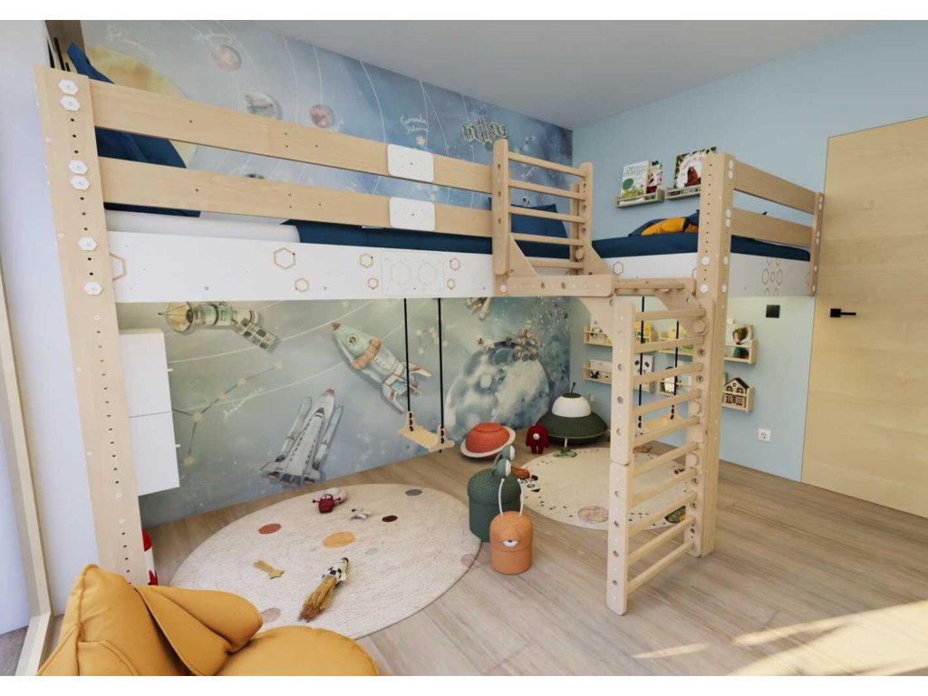 Díky chytře vymyšleným doplňkům můžete postel i případný prostor pod ní proměnit na úžasný prostor pro hraní i rozvoj pohybových schopností vašeho dítěte.