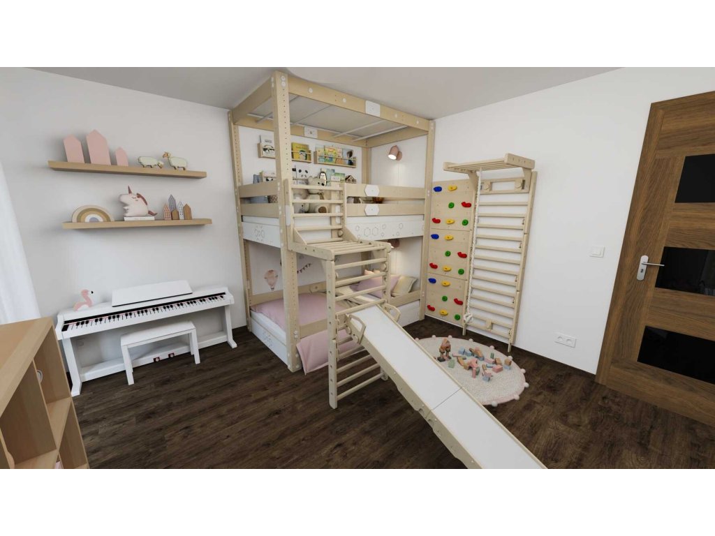 Díky chytře vymyšleným doplňkům můžete postel i případný prostor pod ní proměnit na úžasný prostor pro hraní, relaxaci i rozvoj pohybových schopností vašeho dítěte.