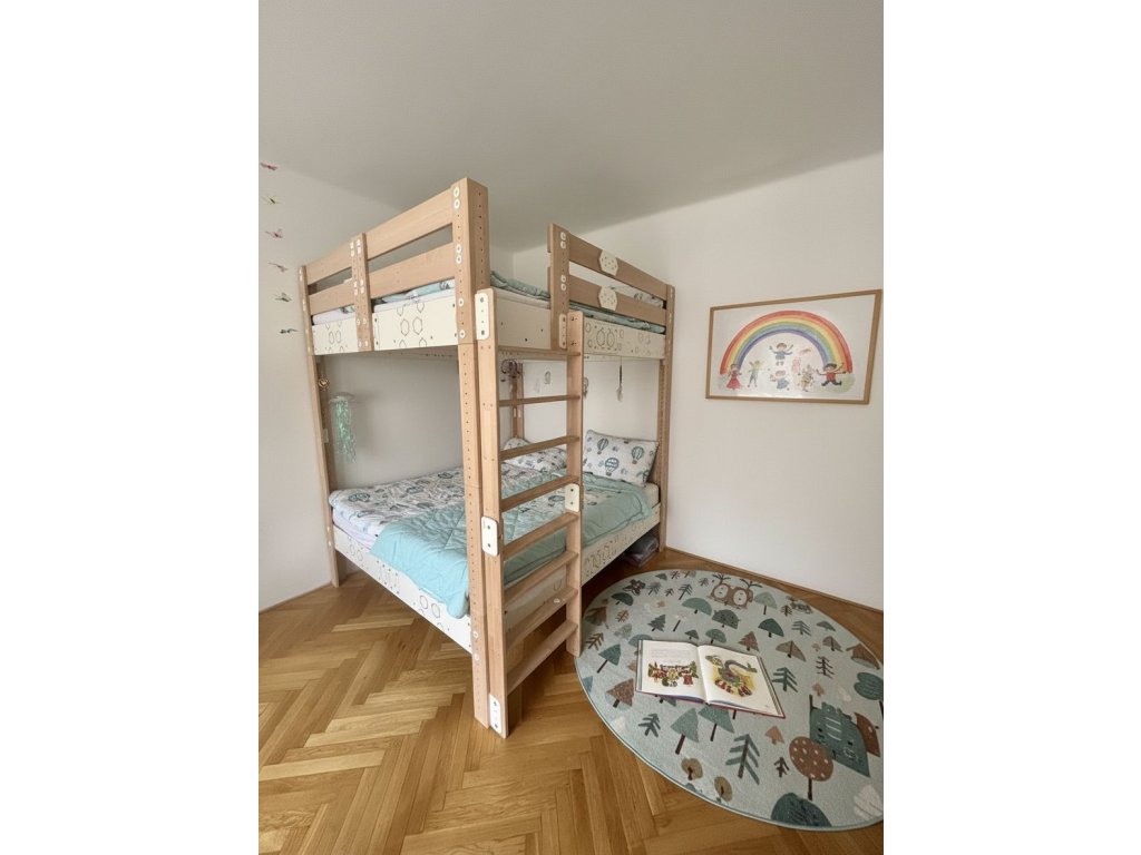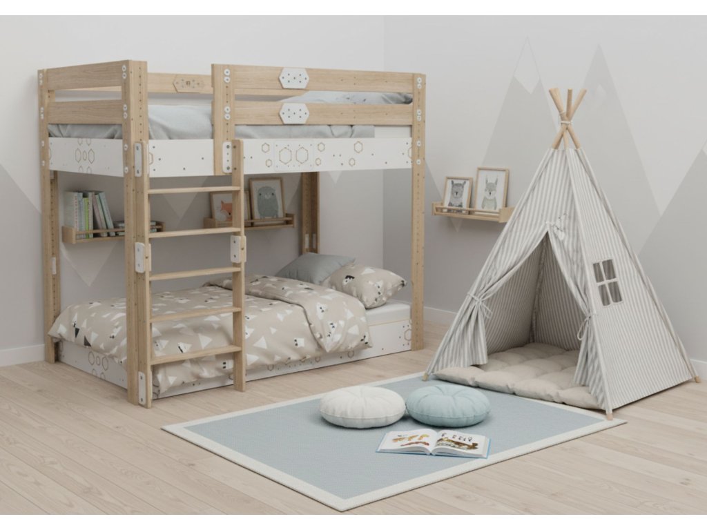 Pokud řešíte otázku, jak v pokojíku ubytovat dalšího sourozence, jste na správném místě. S rostoucí postelí MANU vytvoříte patrovou postel v libovolné požadované výšce.