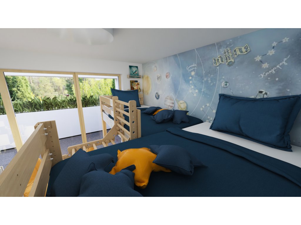 Díky chytře vymyšleným doplňkům můžete postel i případný prostor pod ní proměnit na úžasný prostor pro hraní i rozvoj pohybových schopností vašeho dítěte.