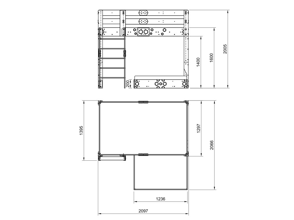 Dvoupatrová rostoucí postel do L s bočním vstupem šířky lůžek 120 cm