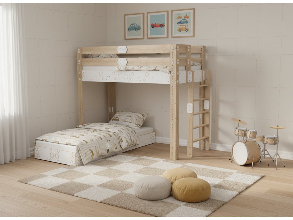 Díky chytře vymyšleným doplňkům můžete postel i případný prostor pod ní proměnit na úžasný prostor pro hraní, relaxaci i rozvoj pohybových schopností vašeho dítěte.