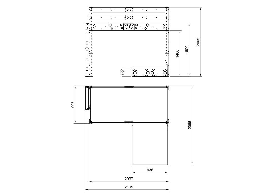 Dvoupatrová rostouci postel do L MANU Š90/V200/VČ