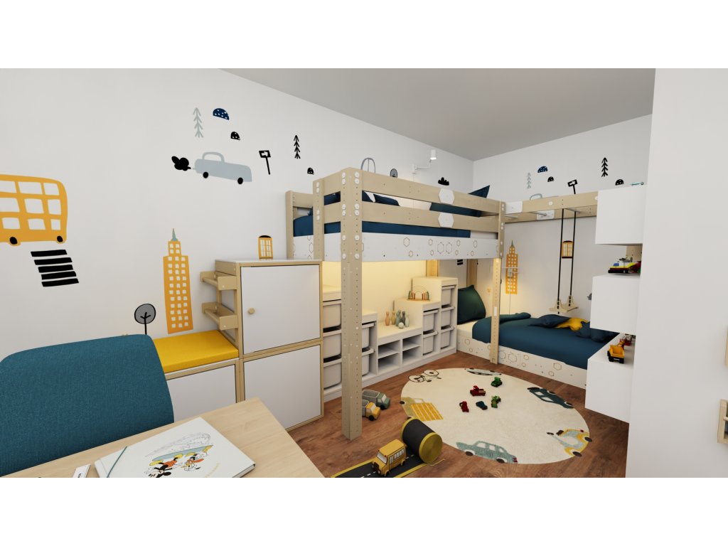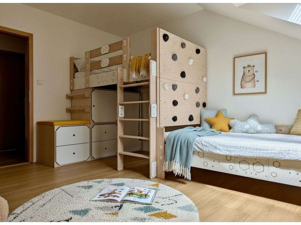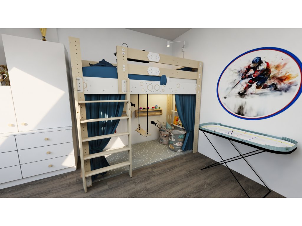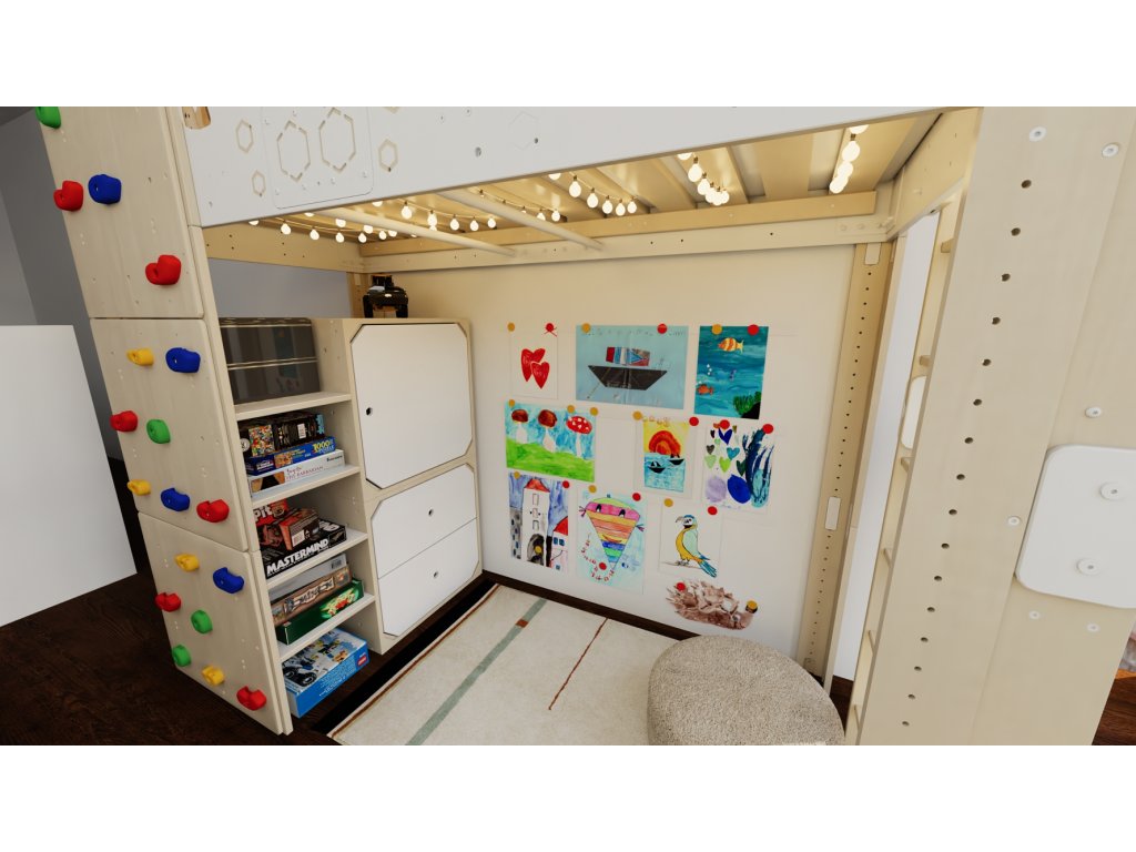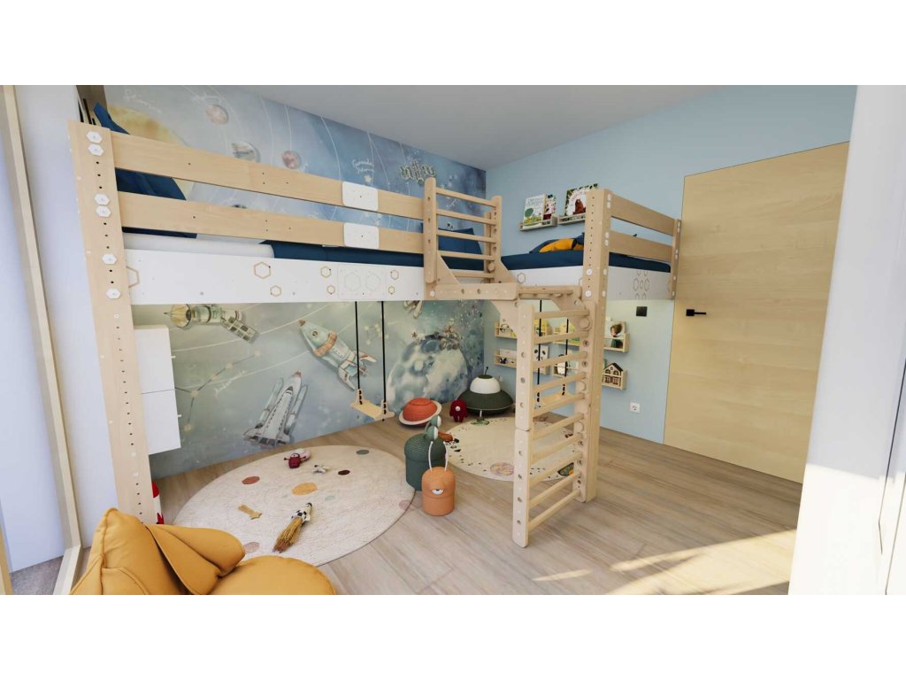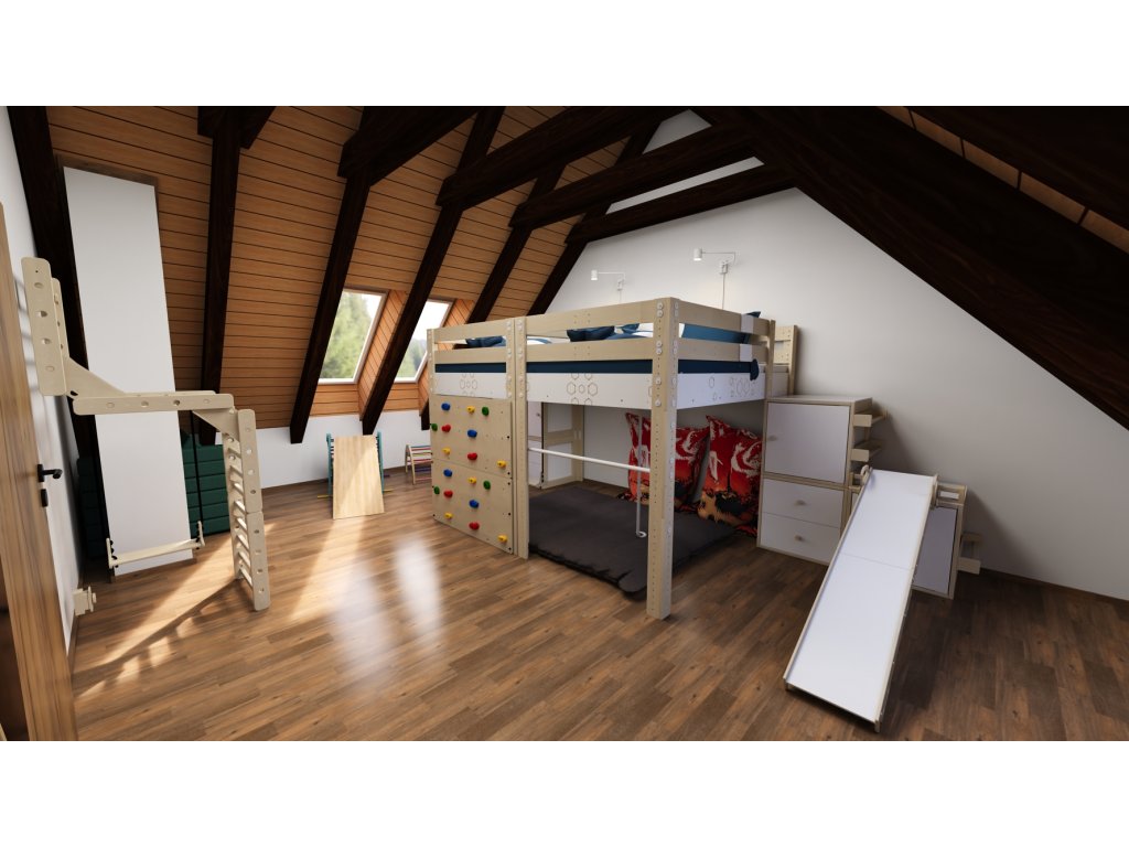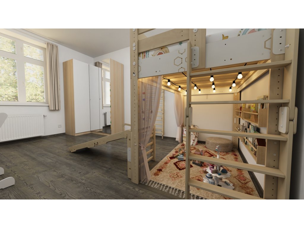 Díky chytře vymyšleným doplňkům můžete postel i případný prostor pod ní proměnit na úžasný prostor pro hraní i rozvoj pohybových schopností vašeho dítěte.