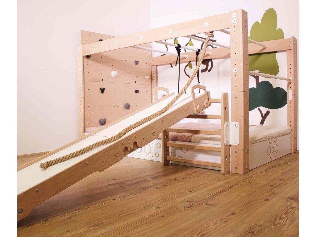 Díky chytře vymyšleným doplňkům můžete postel (i případný prostor pod ní) proměnit na úžasné místo pro hraní, relaxaci i rozvoj pohybových schopností vašeho dítěte.