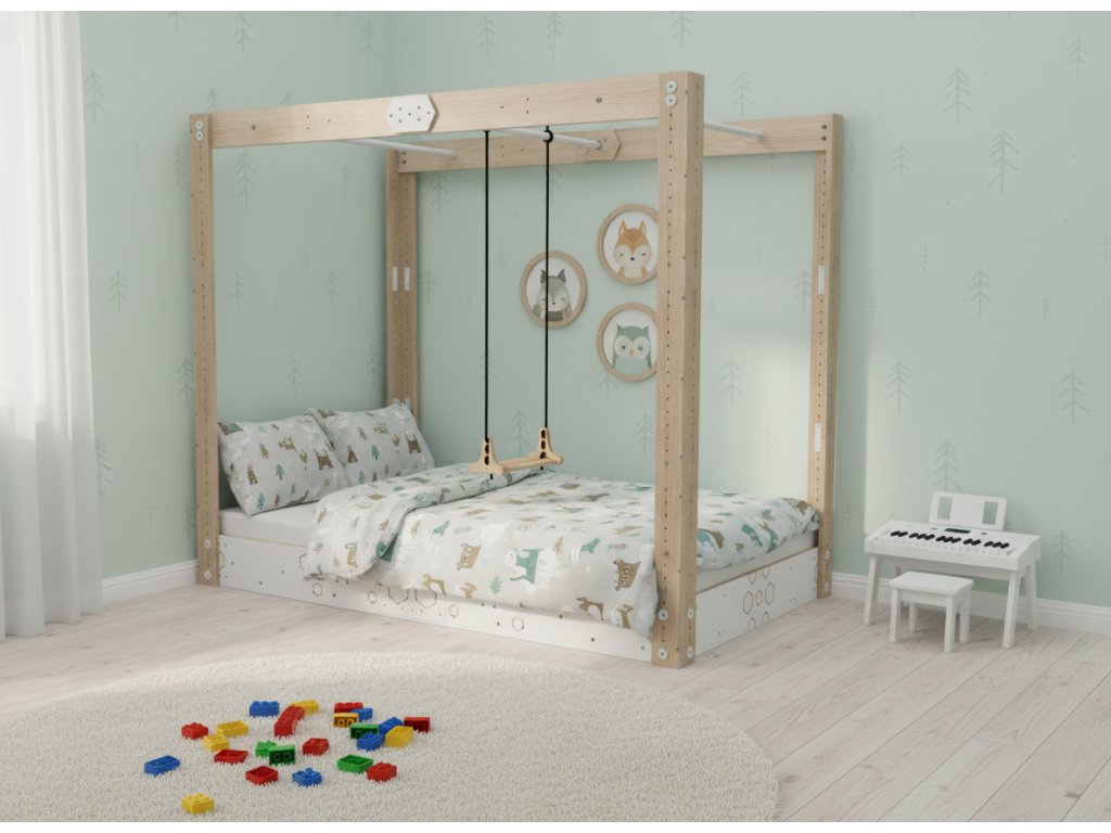 Díky variabilitě rostoucí postele MANU a její kompatibilitě s pohybovou stavebnicí FABER vytvoříte z postele bezpečný prostor pro trénink hrubé motoriky a rozvoj fyzické kondice vašich dětí, a to přímo doma v jejich pokojíku. Variant je nespočet, a záleží jen na vás, jakými doplňky postel osadíte.