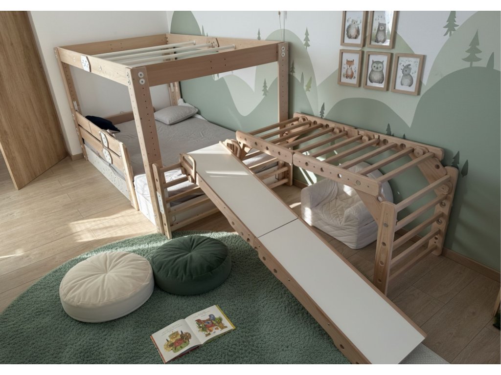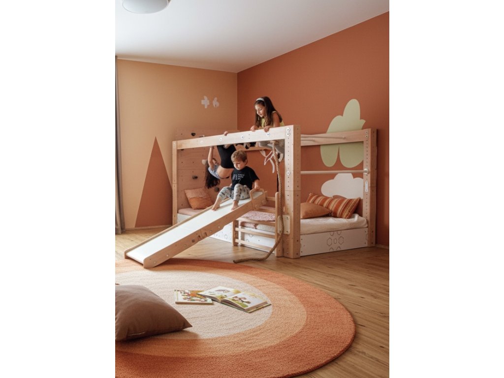 Vďaka šikovne vymysleným doplnkom môžete posteľ (aj prípadný priestor pod ňou) premeniť na úžasné miesto na hranie, relaxáciu a rozvoj pohybových schopností vášho dieťaťa.
