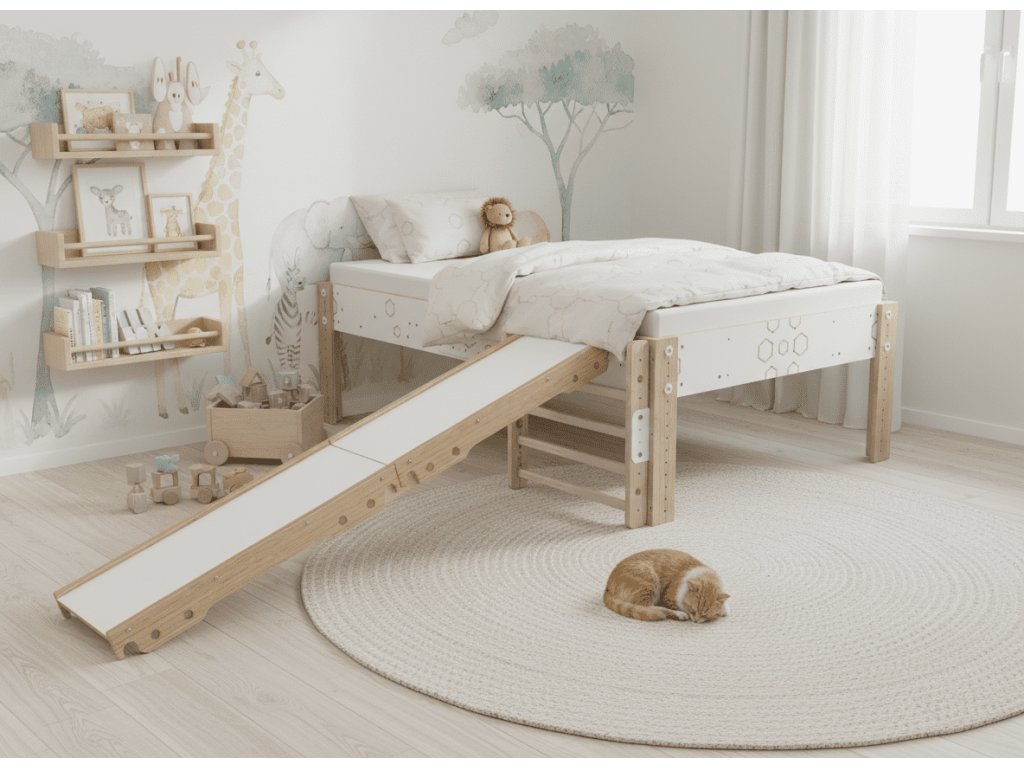 Vďaka šikovne vymysleným doplnkom môžete posteľ (aj prípadný priestor pod ňou) premeniť na úžasné miesto na hranie, relaxáciu a rozvoj pohybových schopností vášho dieťaťa.