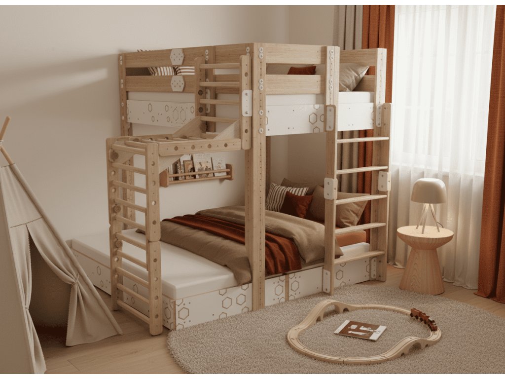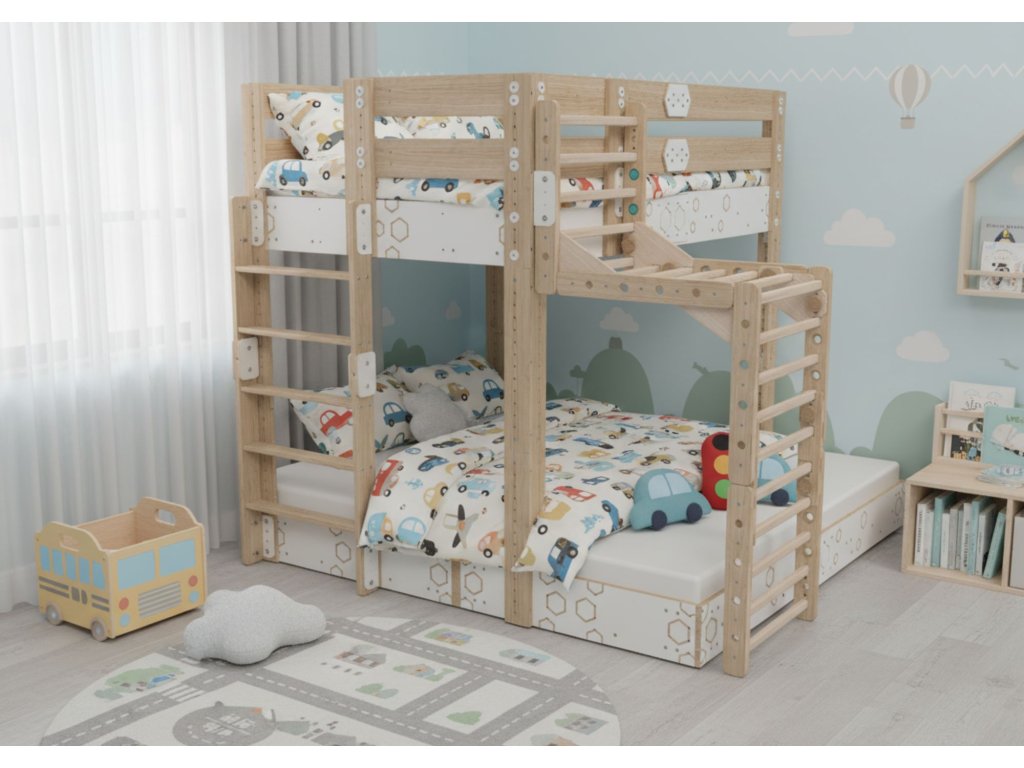 Vďaka šikovne vymysleným doplnkom môžete posteľ (aj prípadný priestor pod ňou) premeniť na úžasné miesto na hranie, relaxáciu a rozvoj pohybových schopností vášho dieťaťa.