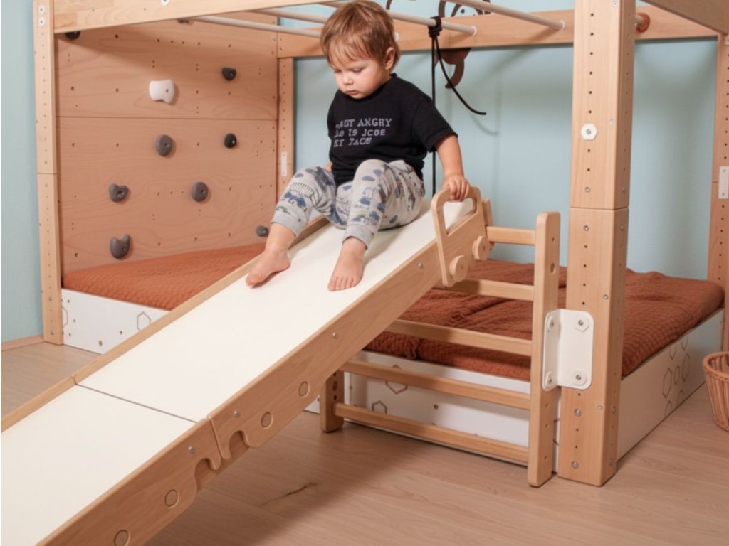 Skluzavku můžete použít buď jako součást stavebnice FABER, nebo ji snadno připojit k jakékoliv posteli MANU.